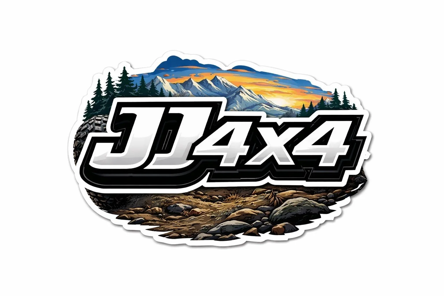 Show your passion for the 4x4 lifestyle wherever you go with our JJ4x4 Signature Sticker. Featuring our bold logo set against a rugged mountain and trail backdrop, this design represents everything the off-road community stands for—adventure, durability, and getting out there no matter the conditions.